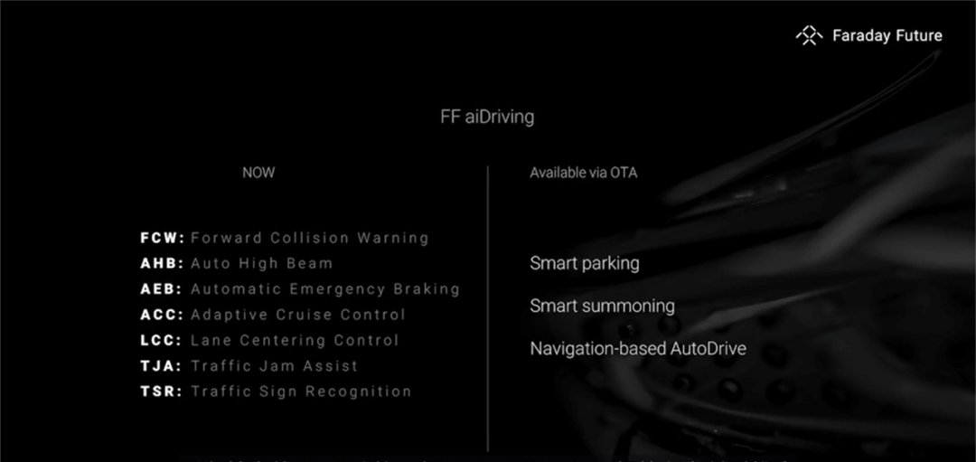 全新FF 91智驾系统交付信息,截图自发布会画面