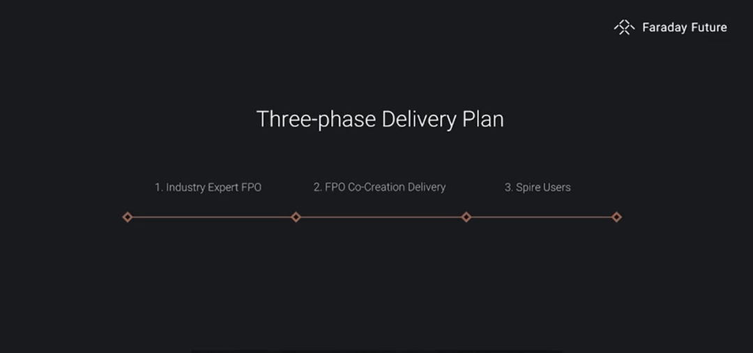按照贾跃亭公布的交付计划看,总共分为三个阶段,分别为行业专家FPO、FPO共创交付和全面共创交付。