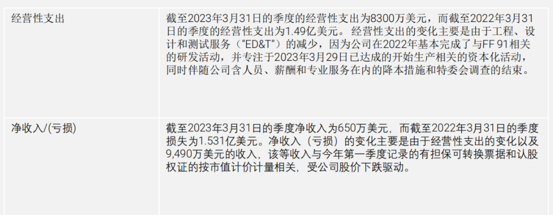 2023年第一季度FF部分业绩数据,图源FF致股东函