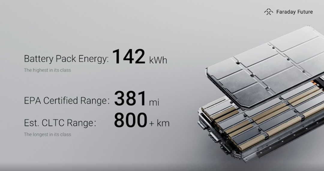 全新FF 91搭载电池和续航信息,截图自发布会画面