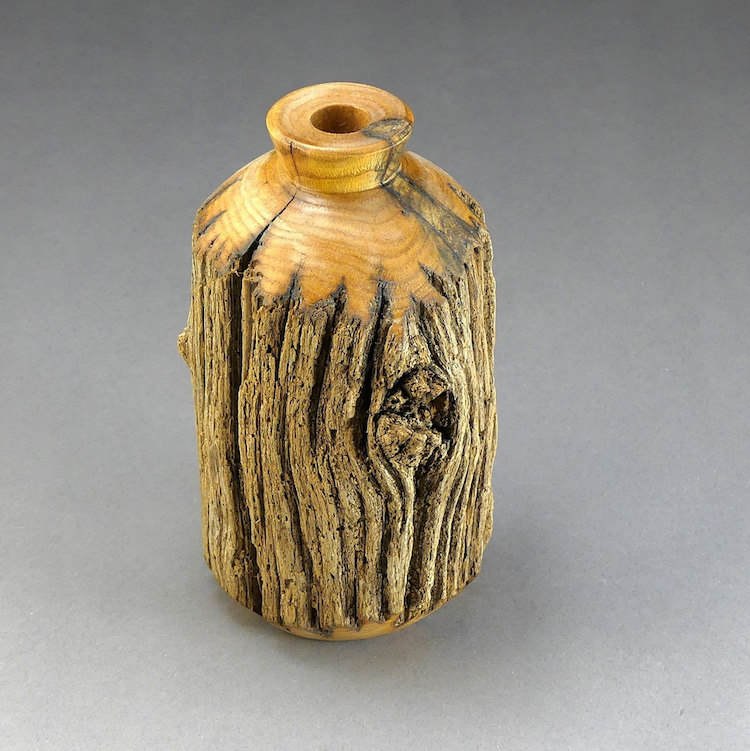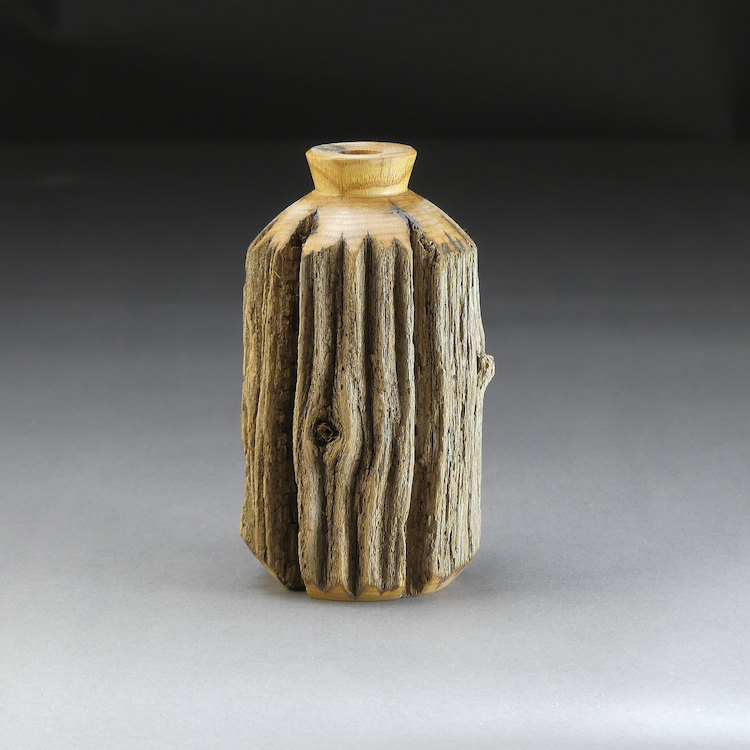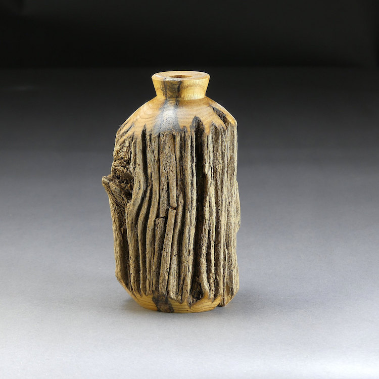 在美国马萨诸塞州的一个狭小却惬意舒适的车间里,热爱大自然的老练工匠雷·艾斯林(Ray Asselin)设计制作了独一无二的木质花瓶。雷·艾斯林是通过木旋(woodturning)的方法来制作每一个花瓶的,这是一种利用旋转车床来对木头进行打凿塑形的工艺手法。凭借着对自然和技艺的高度了解,雷·艾斯林得以将木材的自然魅力和经过人工打磨后的艺术价值呈现在世人面前。