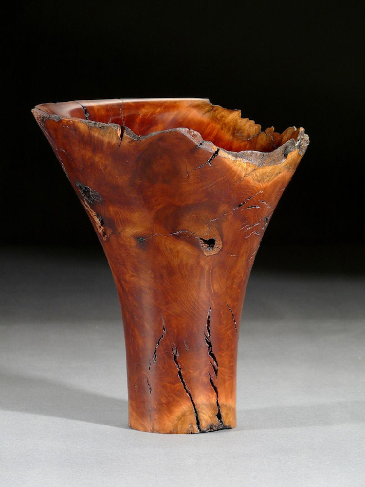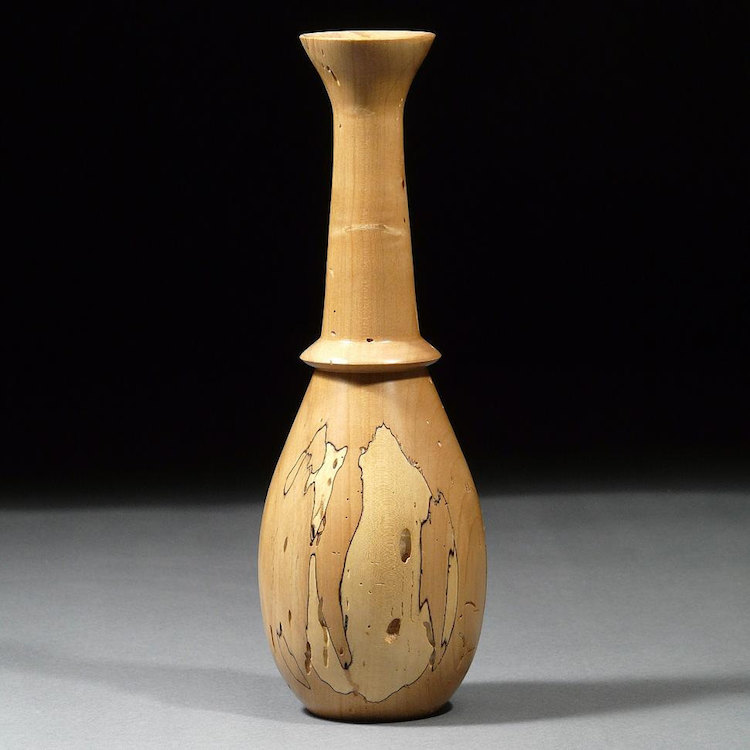 雷·艾斯林所制作的花瓶和容器的大小从6英寸(约合15厘米)到8英寸(约合20厘米)不等,外部轮廓多样,包括经典的瓮形、圆筒形和葫芦等。除了花瓶,你还可以在他的线下小店 Timberturner + Bowlwood里找到漂亮的碗、坚固的纪念品盒子以及造型独特的灯具和其他装饰性物品。这家小店位于马萨诸塞州西部的先锋谷(Pioneer Valley)。如果你无法前去,你还可以在他的商店画廊网站 Bowlwood和Etsy上找到由他打造的品相极好的木制物品。