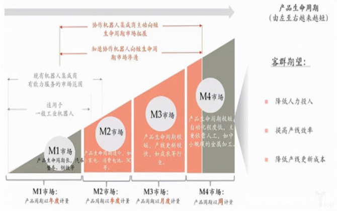 另一方面的驱动因素则在于市场竞争的激烈,厂商须提升柔性能力和生产效率。由于产品周期越来越短,要求周期可控,从而倒逼制造业改变现有的生产模式,其产品的迭代速度也越来越快。伴随消费结构升级,买方市场和消费者个性化、定制化、时效性要求增多,开始从“单一、大批量”向“多样化、小规模”的需求发生转变。