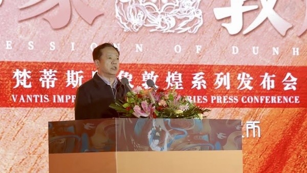 发布会伊始,华威门业董事长高丰上台致开幕辞。高总表示:此次与敦煌美术研究所联合开发推出印象敦煌系列,不仅是梵蒂斯在产品体系创新上的新跨越,也是对千年丝路文明的致敬和传承,是一场跨越千年的艺术对话。印象敦煌系列的推出,代表了梵蒂斯对于美学和创意的追求,展现了梵蒂斯在艺术设计上的专业造诣和创新能力,是品牌发展的又一新里程碑。