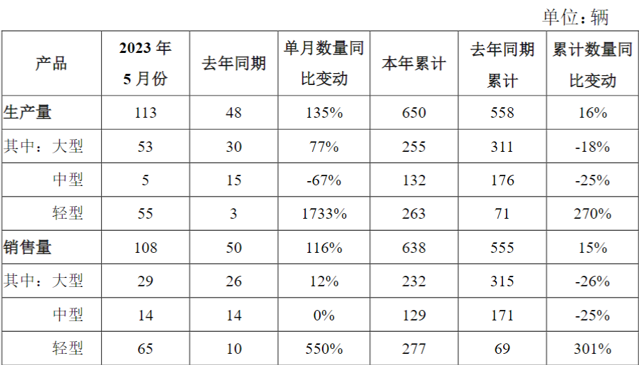 亚星客车:前5月销量合计638辆,同比上涨15%