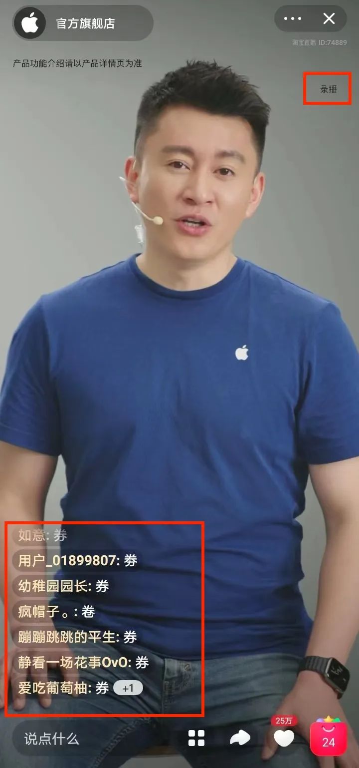 到了5月31日,正当大家摩拳擦掌,准备在苹果直播间抢券的时候,却偶然瞥到了右上角的“录播”两个字。怪不得全程主播都和观众零互动,满屏的“发券”无人理睬,原来只是录像而已。