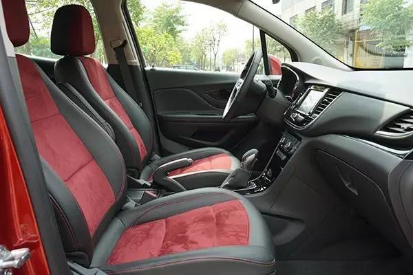 之所以说新昂科拉属于气质型的,主要是因为这款车在内饰上的质感打造。这次体验是新昂科拉旗舰版,全车座椅采用了枫叶红Altancara麂皮绒面材料。这种麂皮材料的优点是,从视觉和触觉上都能直接传递出一种豪华质感。搭配车内多处的软皮质包裹,精细的红黑色缝线和中控部分的镀铬装饰,从一位女司机的视角来看,这样的内饰设计是很时尚、很养眼的。