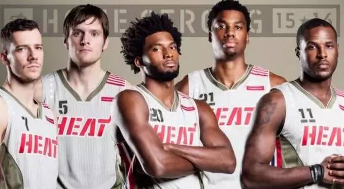 而今年,从11月8日至16日,迈阿密热火也会在比赛中穿上他们的“Home Strong”球衣,每个热火球员的球衣上都有一个已经去世的美军军人的名字,热火队希望以这样的方式,致敬战死的美军战士们。而在过去10年里,热火都会在一些比赛里致敬那些在美军服役的军人。