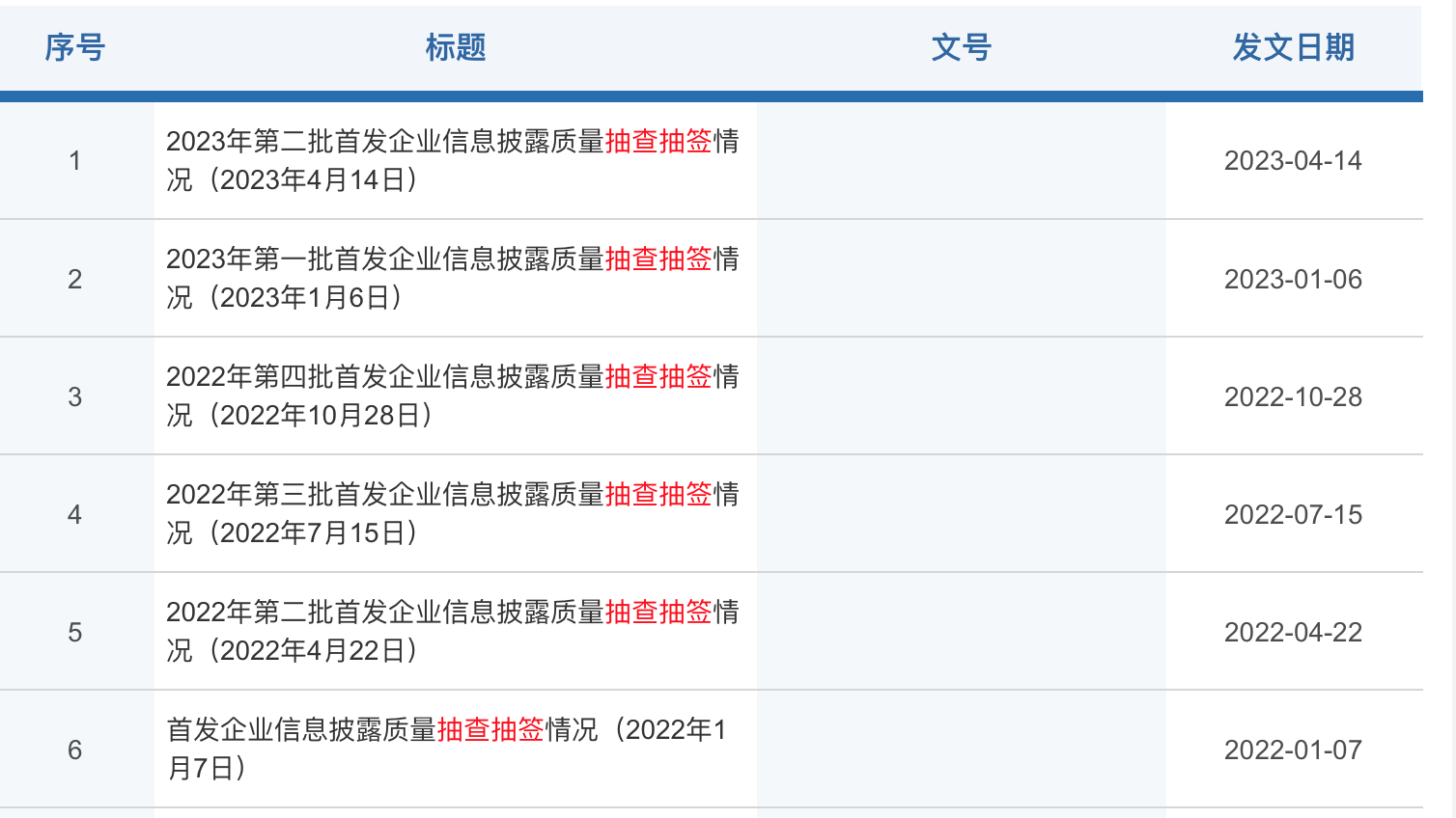 根据证监会网站的披露,2022年里披露有4批首发企业的抽签情况,2023年里也有两批抽签情况发布了公告。