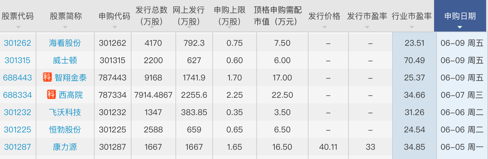 6月7日,只一家科创板公司西高院(688334.SH)可申购,该股申购上限达到了2.25万股, ,网上顶格申购需配市值22.5万元。西高院控股股东为中国西电(601179.SH) ,主营电力检验检测,拥有国家级检验检测中心及科技服务平台。