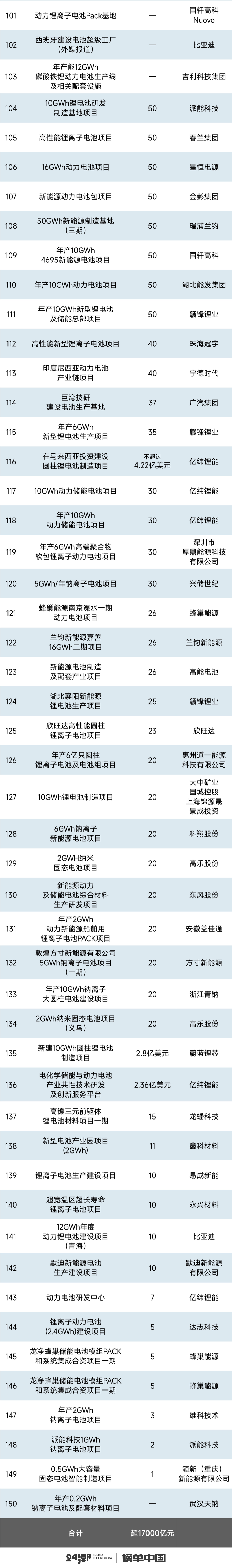 据24潮团队统计,2022年至今,已公布的重大动力电池项目超150个,总投资预算超17000亿元。(详情见文末投资目录)