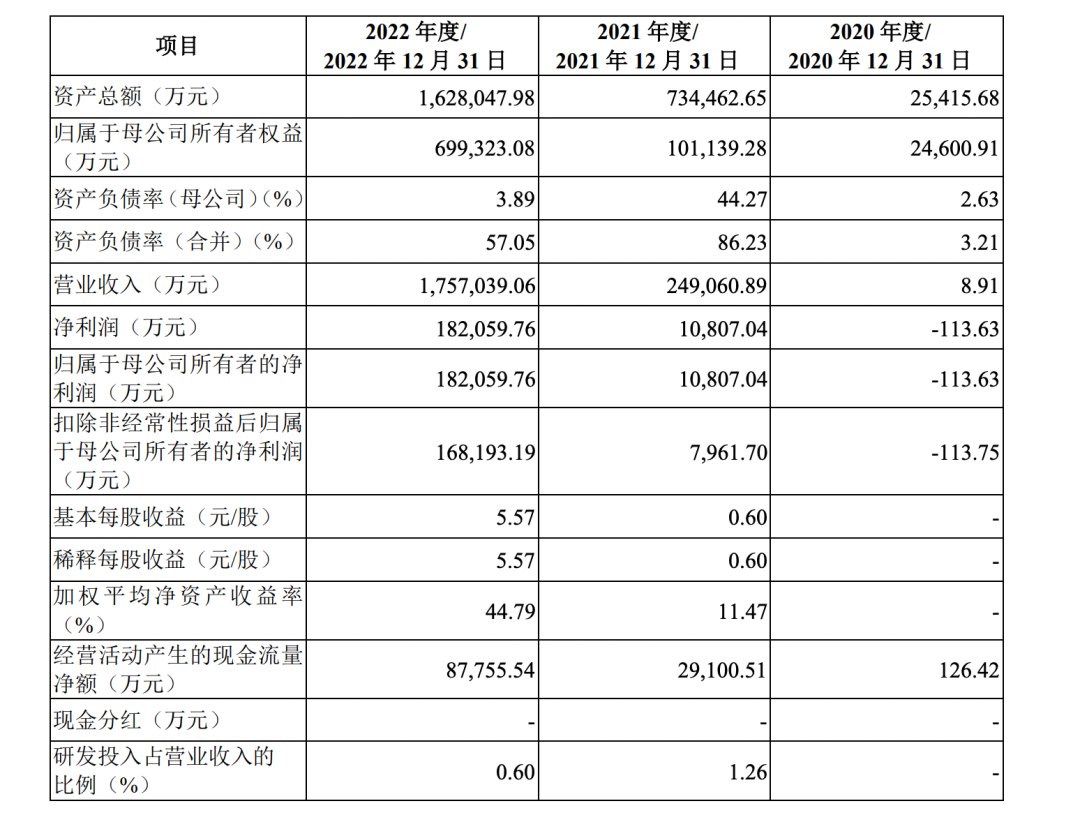 这体现在财务数据上——2020年至2022年,高景太阳能的营收分别为8.91万元、24.91亿元和175.70亿元,复合增长率超过100%;净利润则分别为-113万元、1.08亿元和18.21亿元。
