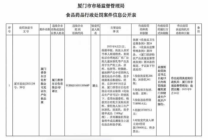 2021年一起“大头娃娃面霜”事件震惊全网,两款名称分别为“益芙灵多效特护抑菌霜”和“开心森林一抹舒宝宝皮肤抑菌霜”被检出含有氯倍他索丙酸酯。此外,在国家药监局通报的添加违禁原料的化妆品中,也有不少儿童产品。厦门香普尔日化有限公司更曾因无证生产儿童化妆品,法人被罚终生禁业,这也是全国首例化妆品行业终身禁业的处罚。