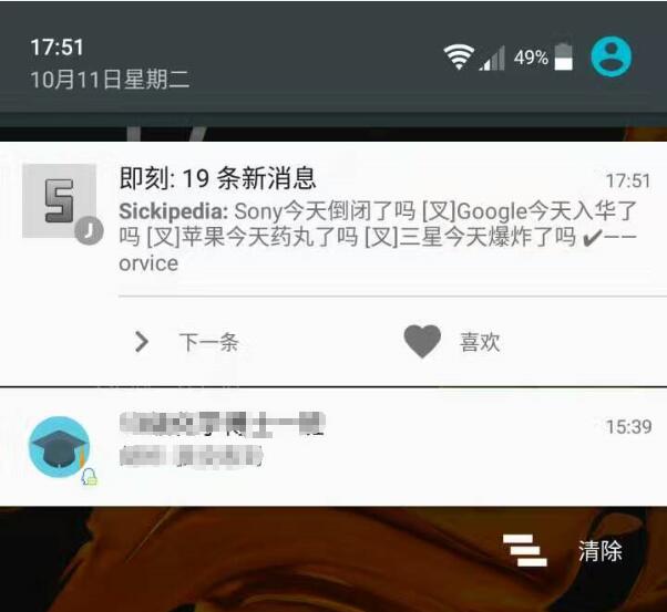 系统的其他方面倒是与原生没有什么区别。原生系统完整的接口也给那些规范的安卓App发挥全力的空间,比如即刻,就可以实现将全部通知以“下一条”的形式收录在一起,而在同样接近原生的一加上,即刻还只能把每条消息都作为新消息展示——塞满通知栏是分分钟的事情。