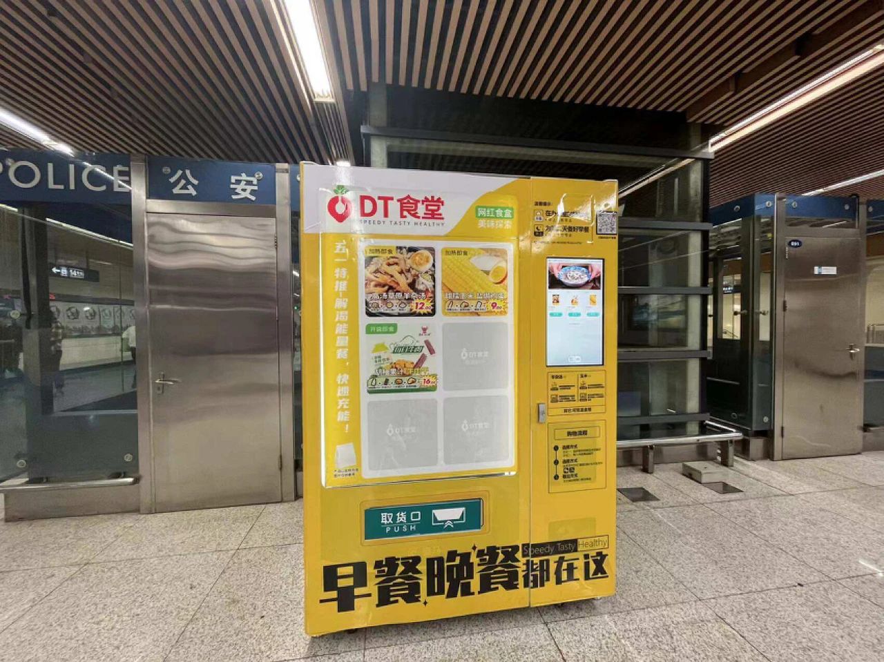 新零售商业评论注意到,在北京国贸、十里河等地铁站,都入驻了名为“DT食堂”的智能取货柜,在售玉米和羊杂汤两种预制菜套餐。