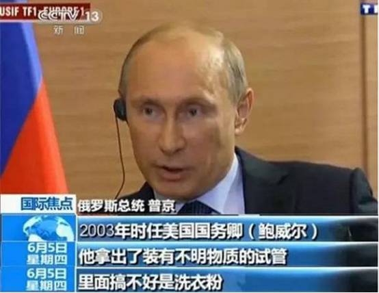 即便是在讨论国际事务,普京还是难掩“段子手”的本色。在一次采访中,普京提到,美国国务卿鲍威尔曾把装有不明物质的试管说成是伊拉克的“大杀器”。“那里面搞不好是洗衣粉。”普京吐槽道。