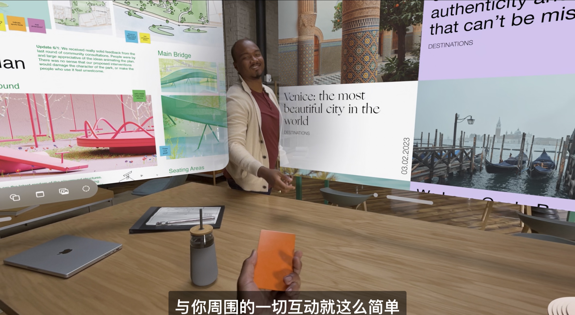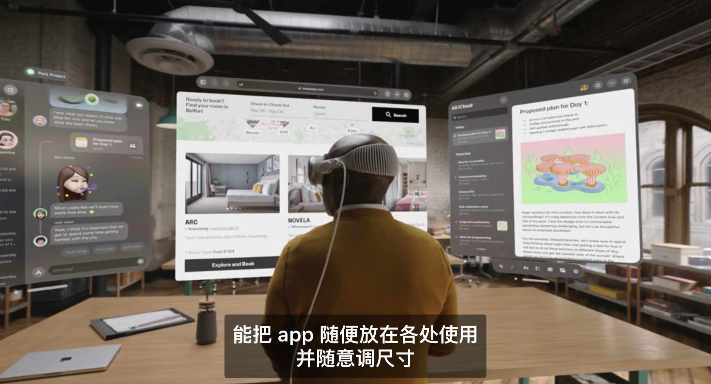 公司成员根据工作和家居场景依次介绍了Apple Vision Pro所能够带来的新奇体验。