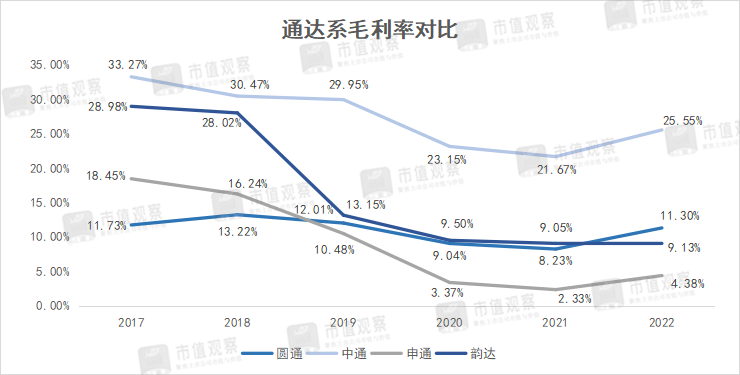 但反观圆通,却错失了最佳转型红利期,成本短板突出。