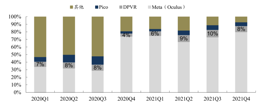而从所搭配的芯片来看,目前国内外相关VR头显芯片主要采用的为高通骁龙系列芯片。据悉,Quest Pro采用的为高通骁龙 XR2+Gen1,PICO、爱奇艺、HTC等厂商采用的均为高通骁龙XR2。