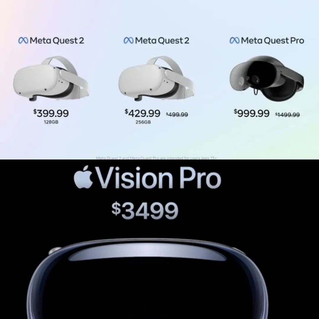 相比苹果的“壕”气冲天不计代价的研发,苹果的竞对们投入更谨慎,在定价方面显然也更谦卑一些。Vision Pro的定价是扎克伯格Meta旗下Quest Pro的三倍,是Quest 3 的七倍。根据数据公司 Insider Intelligence 的数据,已经有大约 10% 的美国人每月至少使用一次XR设备,而这些使用者使用最多的品牌就来自Meta,其中销量最高的Quest 2售价仅不到Vision Pro的十分之一,并且是在Meta亏本销售的情况下。