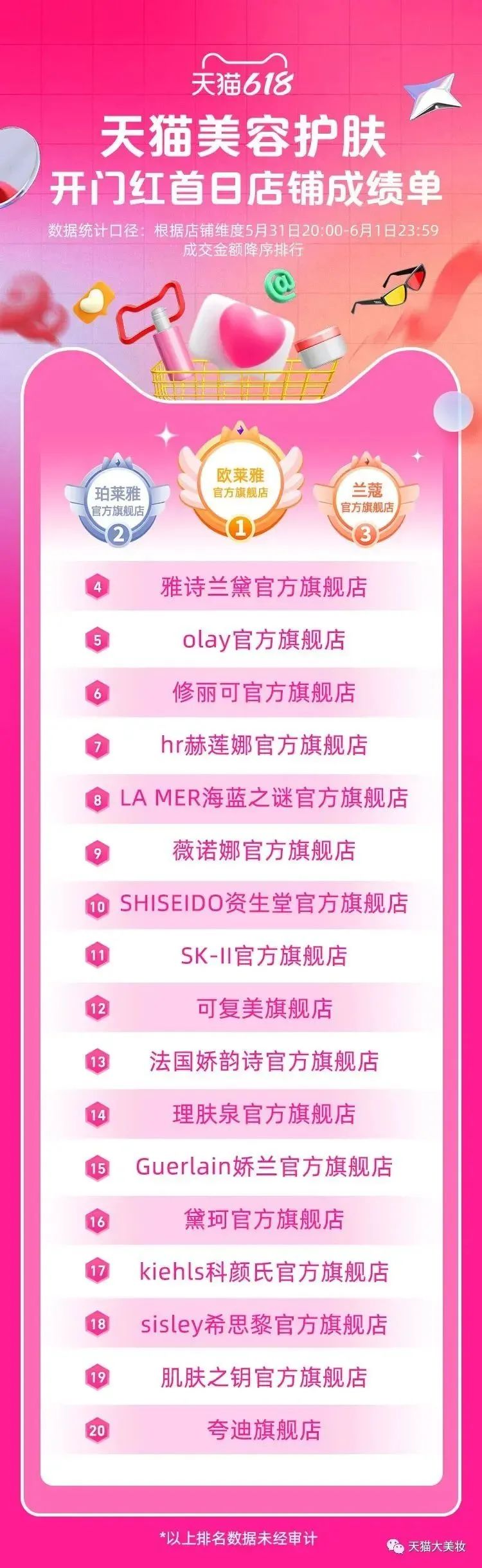 近日,618首战结束,据欧特欧咨询数据,预售全阶段(5月26日20:00至5月31日18:00),天猫护肤(美容护肤/美体/精油)板块的零售额为72亿元,位列全行业第一,同比增长约1.15%。