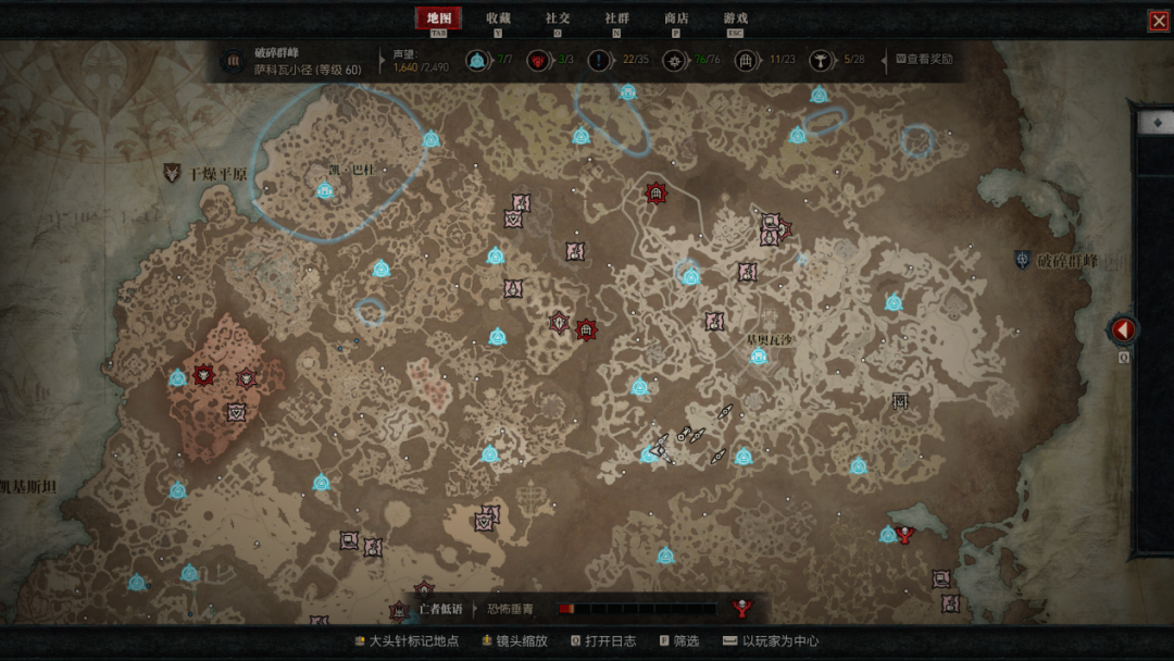 即便是在游戏初期,玩家也可以用脚去“丈量”地图上的每块区域,以此解锁地图上的部分信息。除了怪物等级上的差异之外,《暗黑4》没用任何方式去限制玩家自由探索,作为一部半开放世界的游戏,这点值得好评。当然,新机制的引入一部分是为了提升老玩家的新鲜感,另一部分则是为了MMO内容所服务的,这个我们后面再谈。