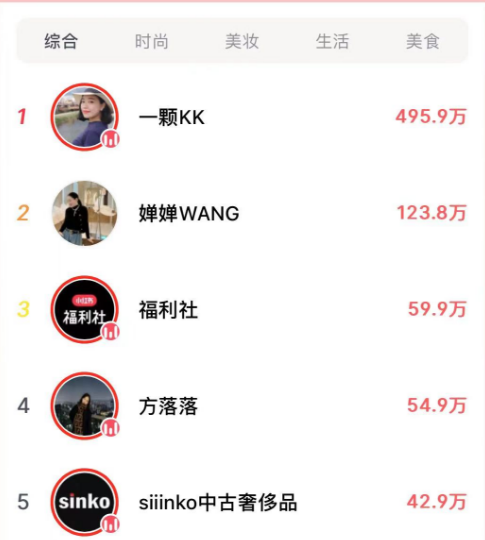 除了入驻的明星,小红书本土的带货达人也与抖快不同,他们起家并非靠娱乐化的内容,而是基于自身能力与经验延展的专业内容。小红书618买买节带货日榜中,前五位中的除了“siiinko中古奢侈品”是实体店铺外,余下的都是各细分领域的博主,如家装、时尚、服饰等。