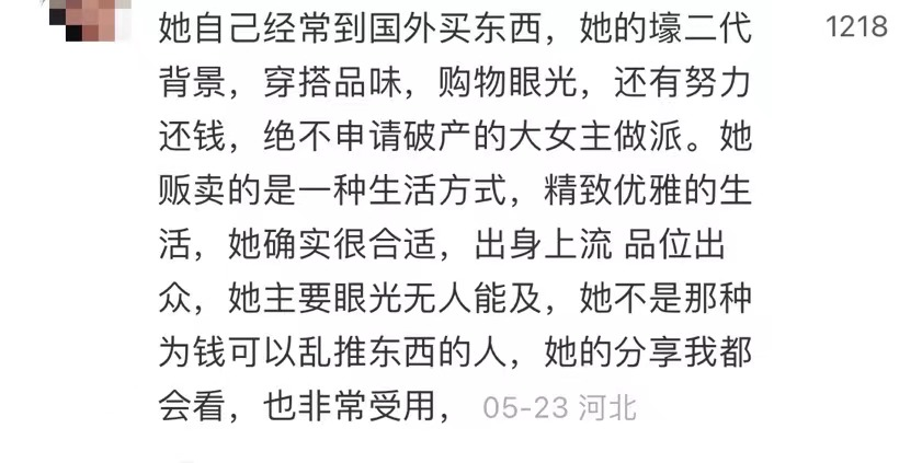 这些高线城市的女性经济独立,舍得为自己花钱,在时尚方面也更加自信。正如一位粉丝评价:“没有五位数走不出董洁直播间。”