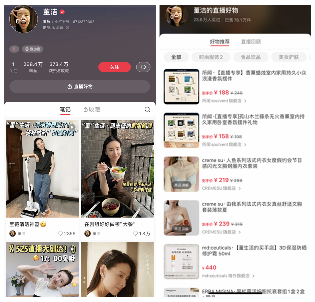 值得一提的还有演员董洁。董洁自2023年1月开始于小红书直播,主打和风细雨佛系讲解,同样受到了用户的追捧。