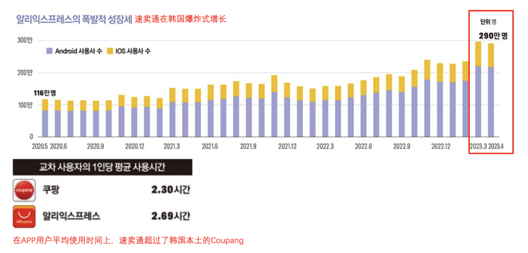 这是AliExpress速卖通作为中国跨境电商代表,继去年在App下载量上AliExpress超越Coupang后,在使用时间上对这一韩国当地巨头的再次领先。从2020年5月至今,AliExpress的用户规模3年内扩大了150%以上。福布斯指出,在韩国,AliExpress速卖通发展迅速背后原因是多样的,除了速卖通上中国制造商品和本身价格优势之外,AliExpress针对韩国用户的使用做了大量的产品优化,例如在推广本地代言人马东锡。