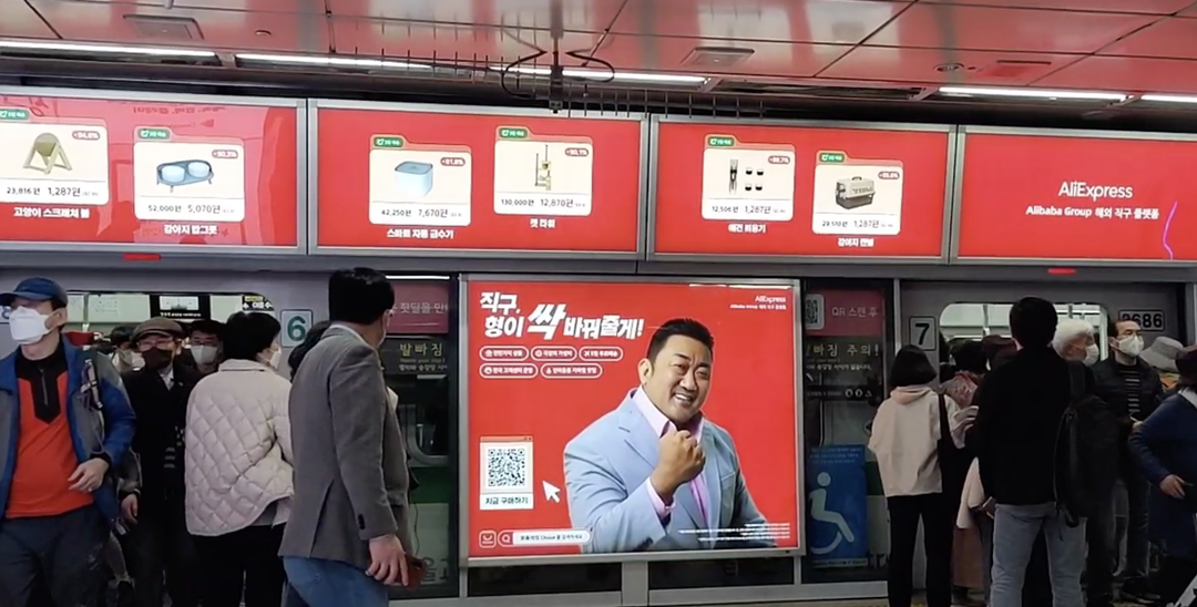 韩国地铁高峰中的速卖通代言人广告