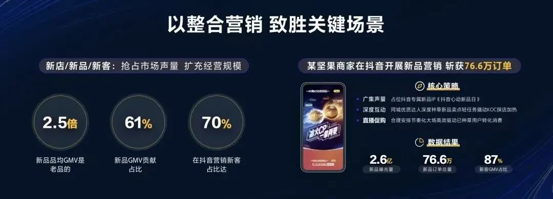 本地生活热度居高不下,抖音、快手、小红书也在纷纷加入战局,争夺蛋糕。其中抖音在本地生活领域布局已久,从去年开始迅速发展——在营销策略层面,以“三新一节”(新品、新店、新客、节点)为核心覆盖关键的应用场景、扩大声量,之后再辅以高频次直播和达人视频引流,稳步扩大GMV;在工具执行层面,巨量本地推、放心投套餐包、优选视频等不同解决方案覆盖了线上营销、线下交易、效果评估,帮助本地生活商家实现长效的生意增长。