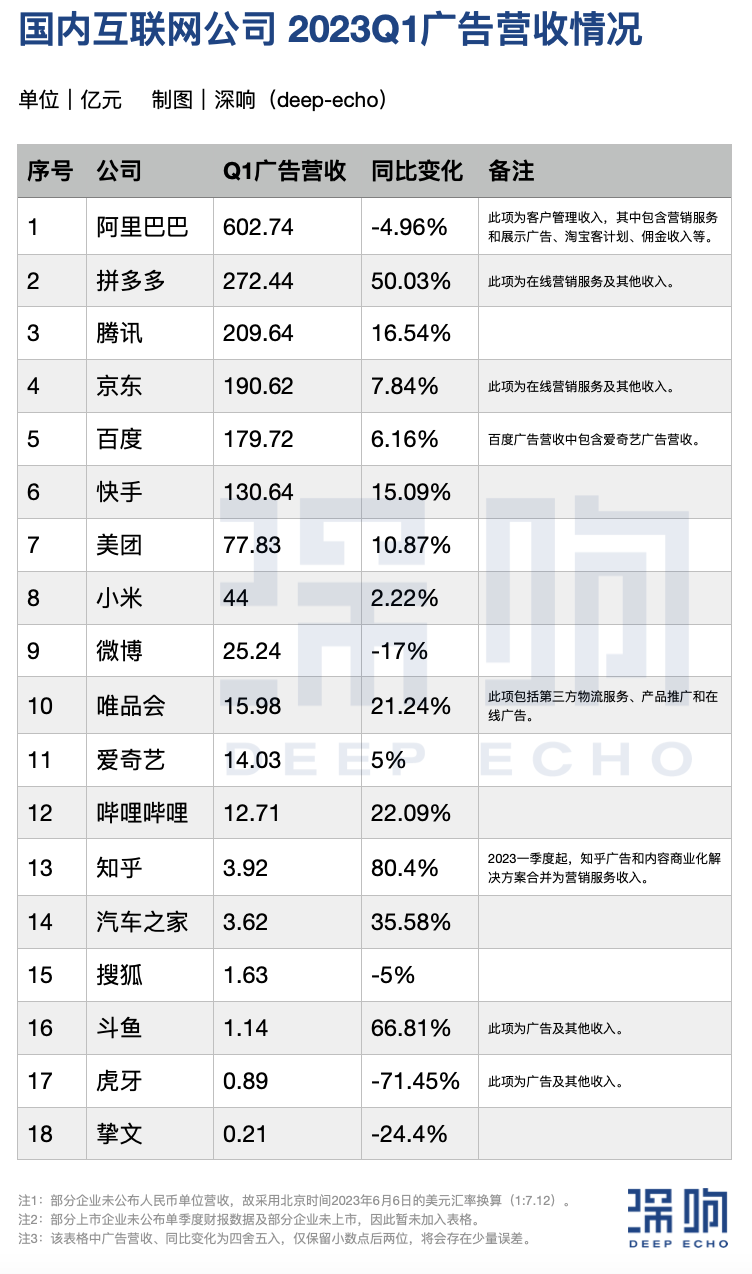 而细化来看,在「深响」统计的18家互联网公司中,广告收入呈正增长的达到13家,其中阿里巴巴、拼多多、腾讯、京东等巨头排位依旧稳定;百度、爱奇艺、斗鱼连续经历了几个季度的负增长后终于回正;美团、B站、汽车之家也有不错的表现。在财报电话会议上,各大互联网公司的高管均对接下来的广告市场恢复持有强信心。(注:由于字节跳动并未上市,没有公开准确数据,因此不在统计范围中)