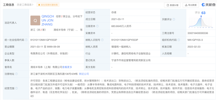 存在同样情况的还有尚阳通2022年的第五大供应商清纯半导体(宁波)有限公司(下称:清纯半导体)。天眼查显示,清纯半导体成立于2021年3月11日,注册资本为683.66万元,未实缴资本,未有参保人员。该公司成立次年即成为尚阳通的第五大供应商,公司采购其晶圆420.35万元,占采购总额的0.71%。