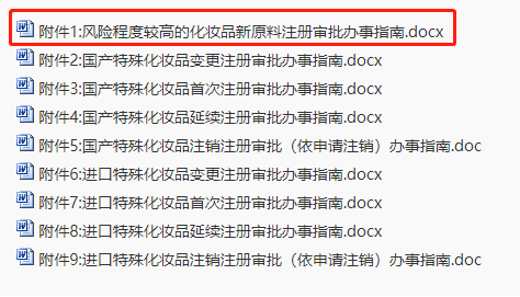 据悉,该《办事指南》涵盖9项附件,不仅公布了风险程度较高的化妆品新原料注册审批,还针对国产特殊化妆品变更、首次、延续、注销注册审批,进口特殊化妆品变更、首次、延续、注销注册审批等内容作了详细的说明和解答。
