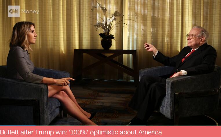 这是特朗普当选后巴菲特首次公开对他发表评论。和美国总统竞选期间相比,巴菲特的口气已经明显不同。