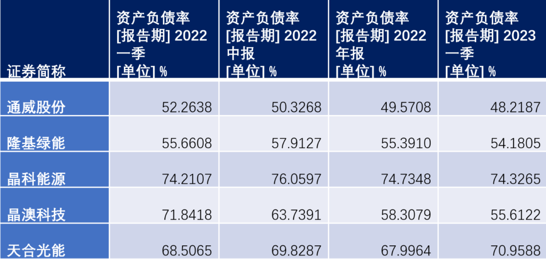 这轮光伏企业大规模扩产始于2021年年底。值得重视的是,头部企业在选择扩产的同时,几乎都选择了降低资产负债率,通过资本市场扩大直接融资规模。