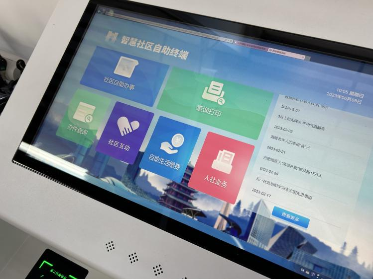一名前来办事的居民在一体化智能机上一边操作一边说道:“现在居民办事方便呀,都不用出小区门,也不用去窗口,就在这台机子上操作一下,什么业务很快就办好了,真的很方便”,这就是智慧社区建设的显著成就——让数据真正“下沉”到家门口。