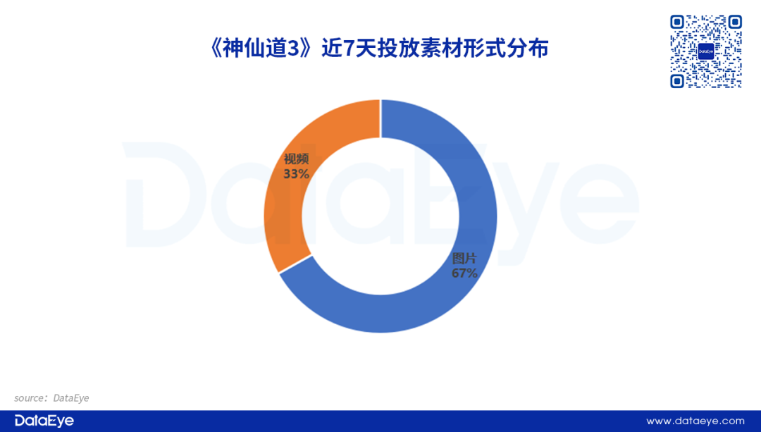 DataEye-ADX投放数据显示,《神仙道3》近7天投放素材类型分布中,视频素材占比仅为33%。