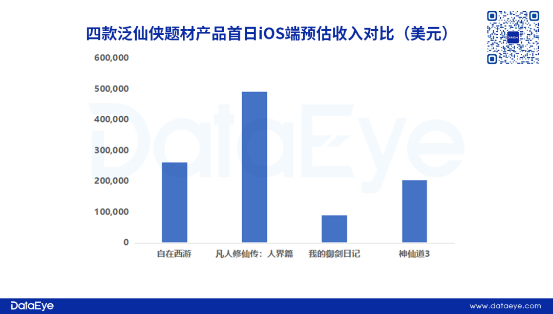 收入数据:点点数据显示,《神仙道3》首日预估收入约20万美元。可是对比数据,《神仙道3》产品初期的预估收入数据中规中矩。