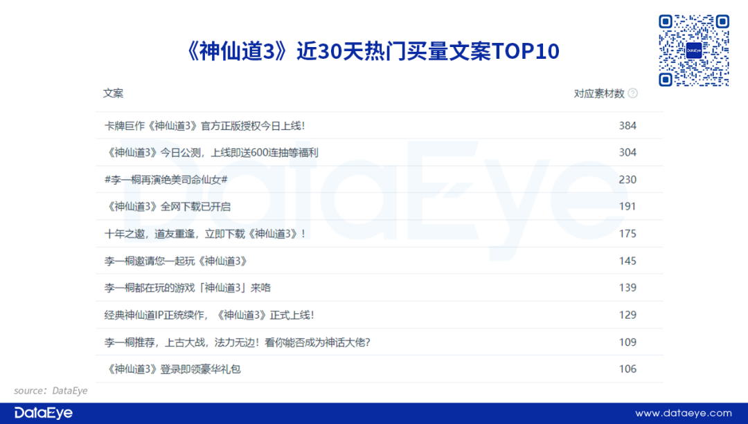 对比近期国内上线的几款泛仙侠题材产品来看,《神仙道3》呈现出“轻投放、重达人”的营销思路。