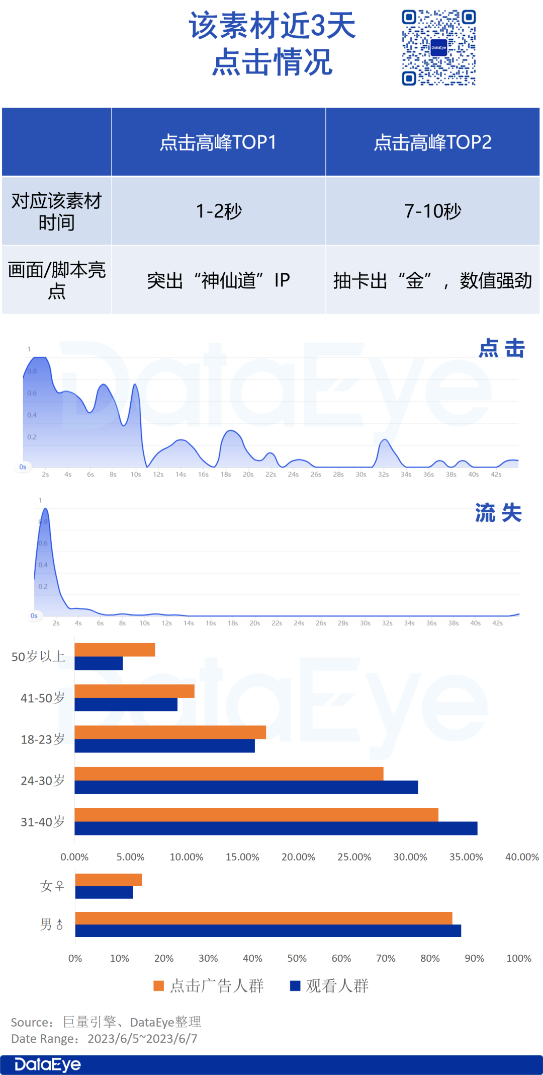 《神仙道3》首日近3000条投放素材,且大多数为图片素材,经费投放不够。而且对比近期上线的同类型产品,投放表现上并不算强势,而且预热期几乎不做规模性买量投放,只是配合产品上线当天进行造势。