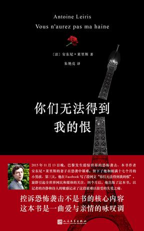 法国记者安东尼·莱里斯的妻子也在恐袭中罹难,留下了他和刚满17个月的儿子。4个月后,莱里斯将自己的亲身经历著成的《你们无法得到我的恨》一书出版,他以日记体的形式,记录下失去妻子和母亲的这对父子在暴恐事件后人日常生活。