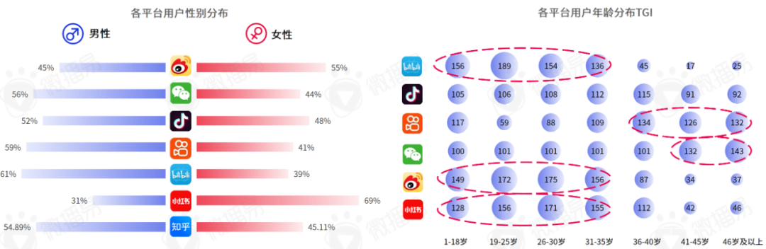 来自微播易的《2023年中国KOL营销趋势洞察报告》显示,在最新的用户性别分布上,微博和小红书的女性用户占比都在50%以上,小红书相对更高,达到99%;同时在年龄分布指数上,微博和小红书在26-35岁的人群差异上几无分别,这是目前消费市场的主力。