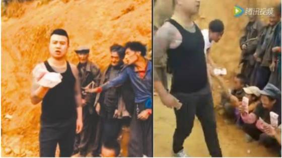 当地的山民淳朴啊,以为《爸爸去哪儿了》剧组又来拍摄新节目了,大家锣鼓喧天,夹道欢迎,但没想到迎来的是几个满身皮皮虾,凶神恶煞的金链大哥。