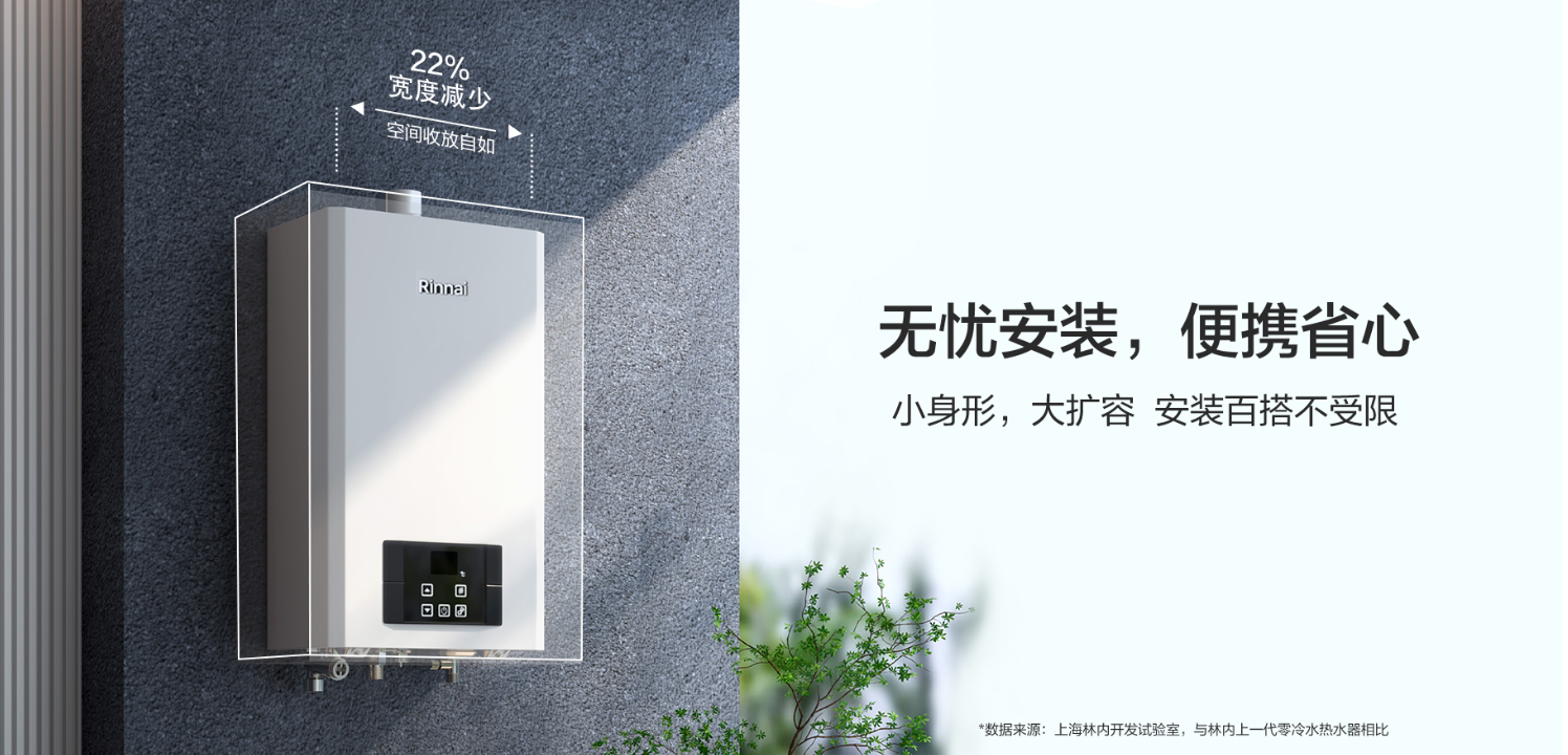 在产品设计之初,林内就考虑到不同家庭对于热水器的多元化需求。通常来说,零冷水热水器需要在新房装修水路铺设阶段预埋回水管,旧房改造则比较复杂,好在林内焕享系列热水器支持两管安装方式,无需提前铺设水路,也能便捷安装。另外,这款热水器的机身宽度仅有330mm,较上一代减少了22%,小空间也能轻松安置,各种现代家居装修风格亦能随心搭配。
