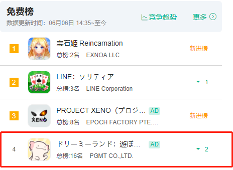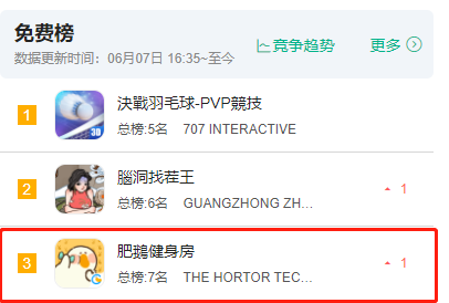 除了日韩地区,台湾地区市场也具有模拟经营品类的基因。去年的休闲爆款《肥鹅健身房》在近日加入竞争,6月1日上线后今日在免费榜第三名,畅销榜28。此外,三七互娱去年则上线了一款《营业中!旧时光商店街》,今日畅销榜排名31,此外点点互动的《菲菲大冒险》《冰封时代》今日分别在畅销榜排23名与26名。