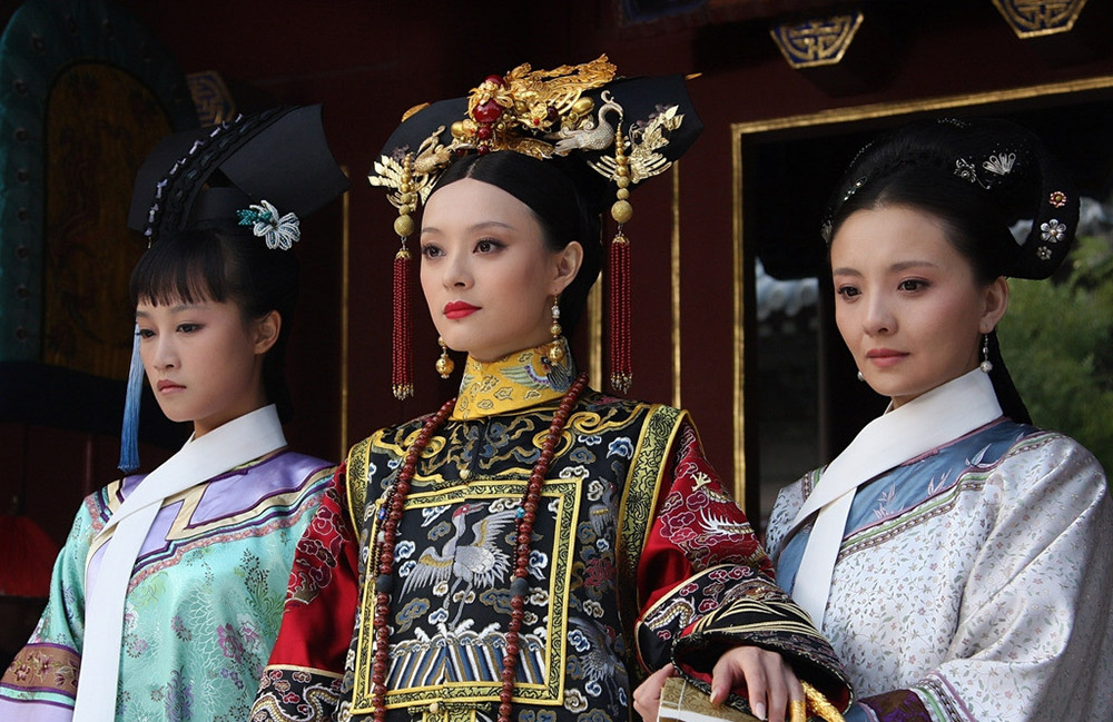 在这个过程中女主角的唇色也会随着地位的改变而改变,由浅粉色到橘红,再到正红色(皇后),最后是偏紫的深玫红(太后)。颜色越醒目就越高调,这是身份地位的象征。