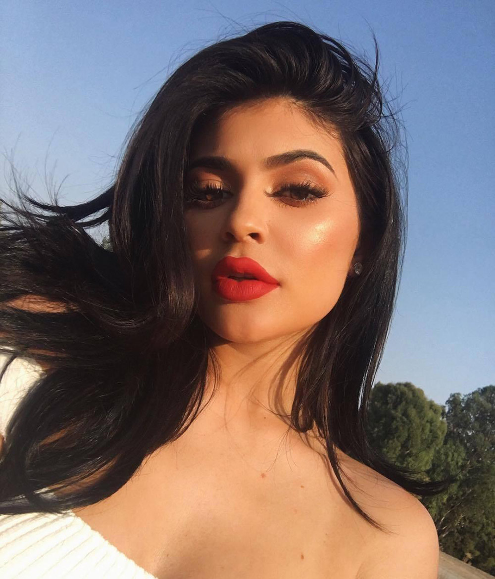 当然,不是只有皮肤白才能用大红色的口红。如果你有参加过Instagram上凯莉·詹娜 (Kylie Jenner)发起的“美唇挑战”,你肯定对她所创建的美妆品牌Kylie Lip Kit有所关注。这个美妆品牌主打唇妆,且号称能拥有媲美丰唇的效果,而Kylie本身的厚嘴唇对这些口红的展示则是最好的招牌,在她的Instagram里,你可以找到很多你所想象不到的“重口红唇色”,其中包括豆沙色、大红,甚至是蓝色、咖啡色等。