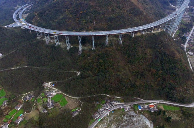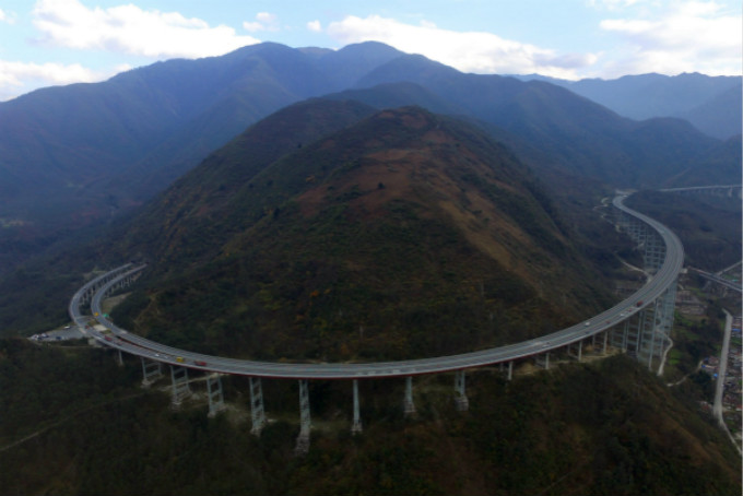 空中俯瞰四川雅西高速“双螺旋隧道”,犹如巨型“过山车”一般。